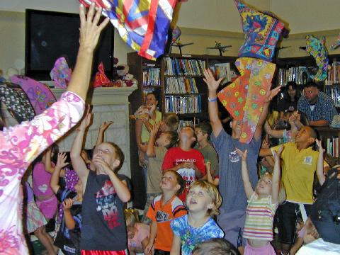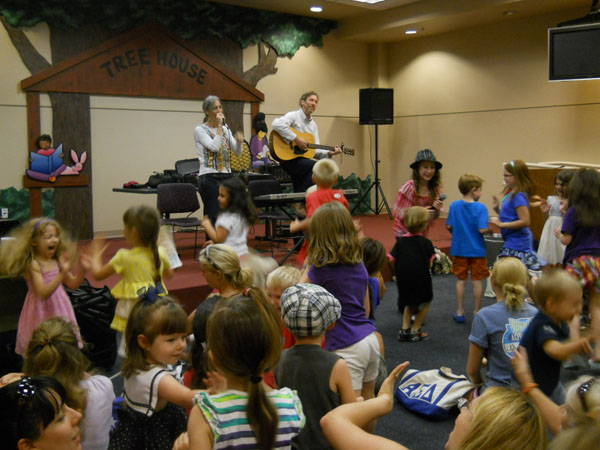 Dynamic concerts begin at eye level as performers ask youngsters to help with the show. Soon everyone is singing, dancing, playing rhythm sticks, tossing scarves, flying like butterflies, popping bubbles, and high fivin’ new friends!